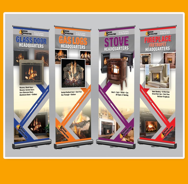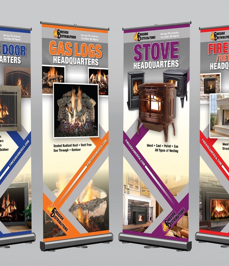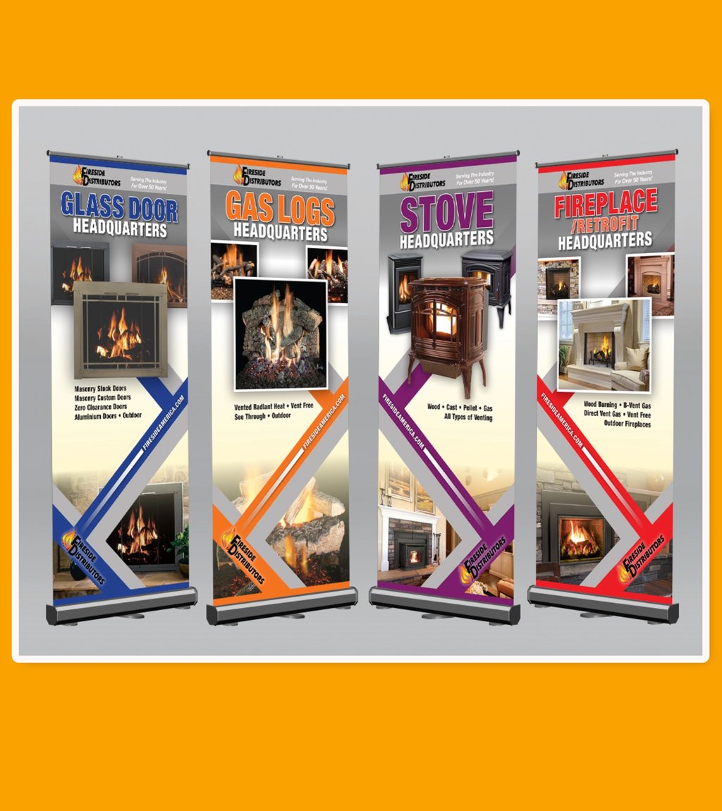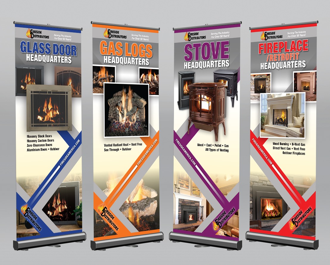 I created these trade show banners while working at Fireside Distributors in Raleigh. They are designed to be shortened by one third if space is limited.
